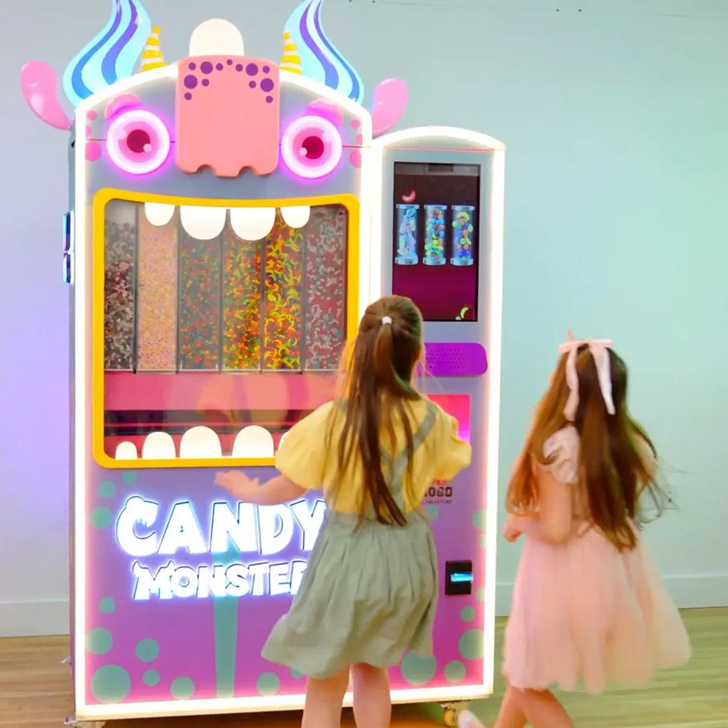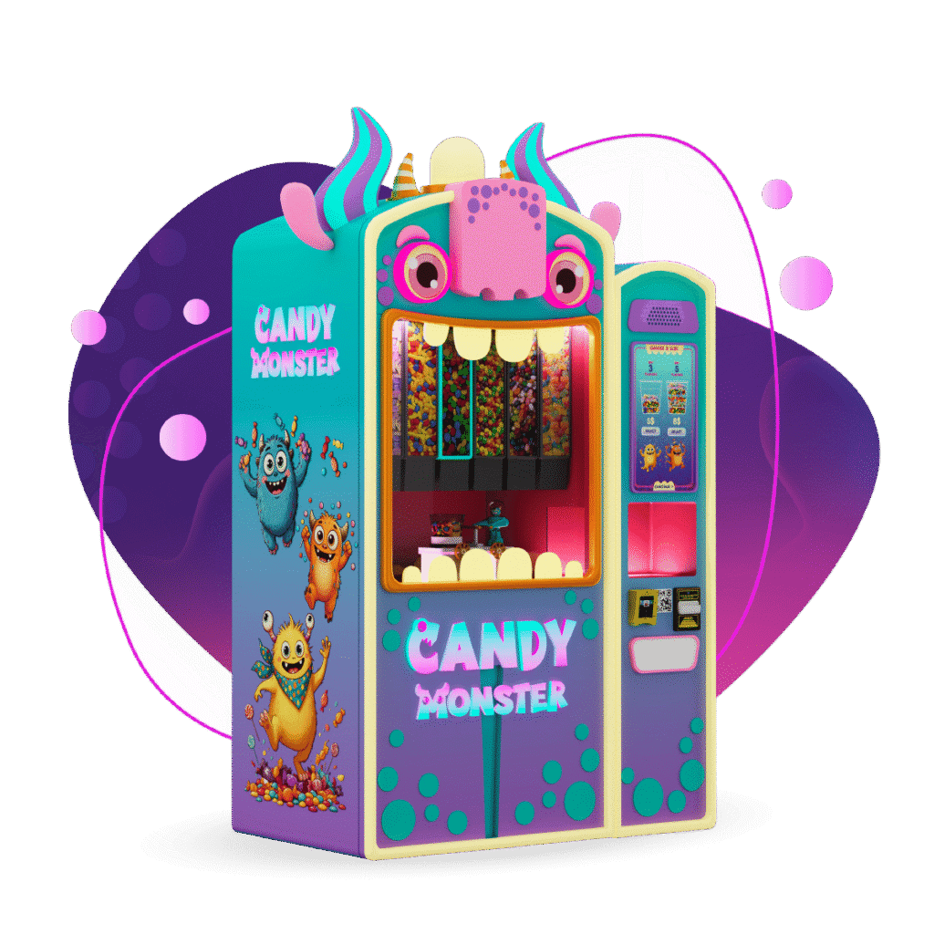 The Candy Monster Machine is an interactive and thrilling treat dispenser that brings the fun of candy to a whole new level. Styled as a quirky monster, the machine features a Monster Robot that arrives at your service with a unique Monster Cup. This charming, mobile creature travels through the machine, collecting a mix of delicious candies directly from the Monster’s stomach into the cup, creating a one-of-a-kind experience.